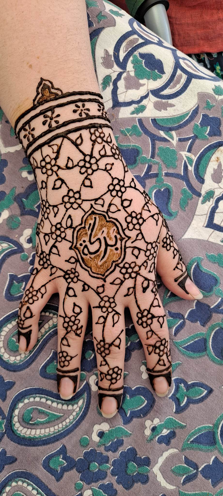 I started researching and practicing henna body art in 1993, and it quickly became a lifelong passion. I love being part of a multicultural tradition that goes back at least 3000 years, touching billions of lives. I love being part of a living tradition used at celebrations all over the world, every day. I love collaborating with people to make a design that really speaks to them personally. I love sharing my knowledge, whether I'm teaching a formal class, doing a basic library presentation, or just chatting as I work at a festival.