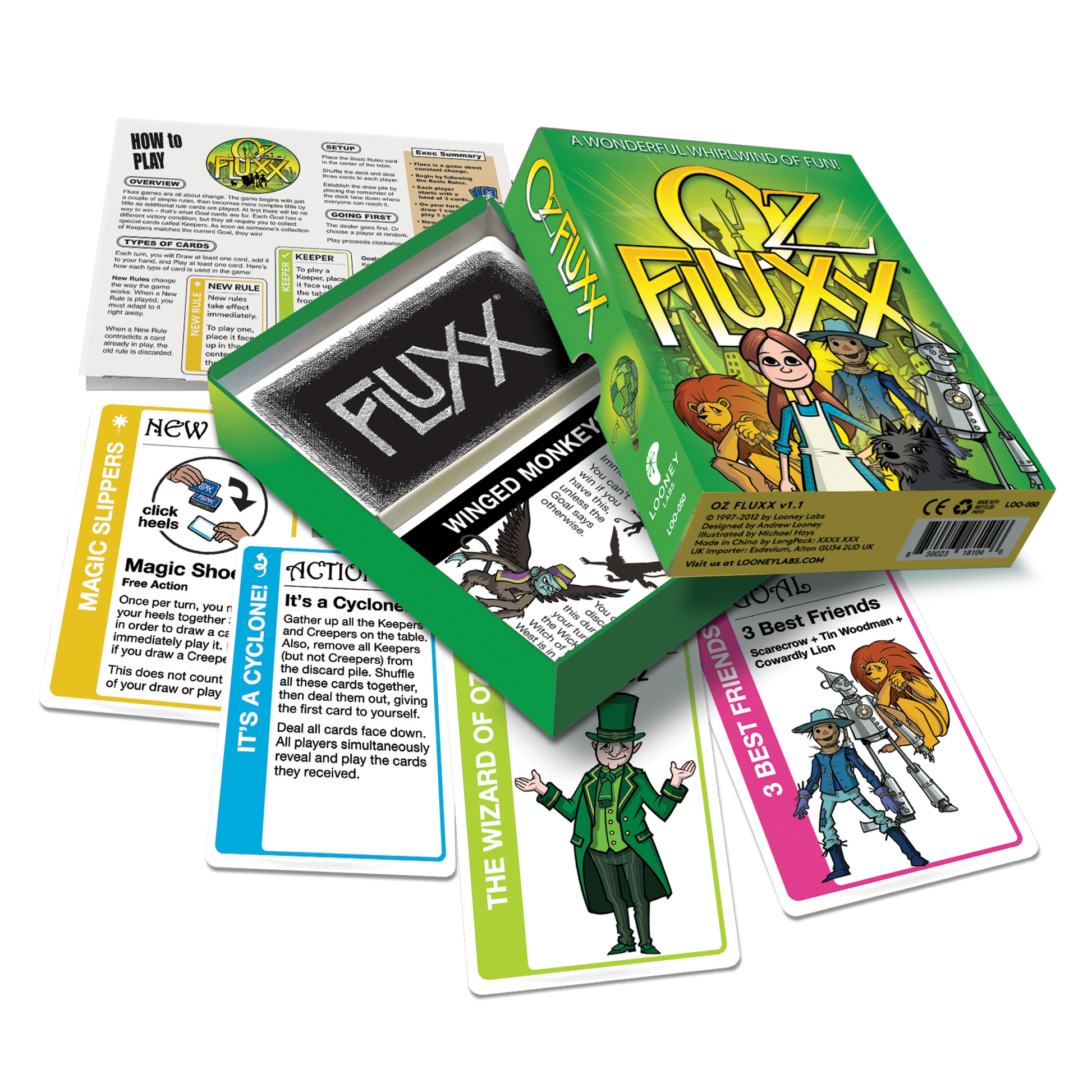Does life seem drab and humdrum? Let the cyclone of the ever-changing card game, Fluxx, whisk you away to a magical world of fun! Mingle with Munchkins, make new friends, and follow the Yellow Brick Road to see the Wizard - but keep a bucket of water handy: you never know when you might need to melt a Wicked Witch. Next stop...the land of Oz!